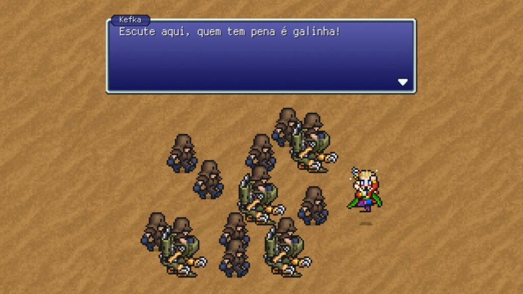 Final Fantasy VI Pixel Remaster preserva uma narrativa ambiciosas e emocionalmente próxima de nós. Mais do que uma simples batalha entre bem e mal, é uma como uma complexa teia de destinos entrelaçados em um mundo à beira do colapso. Posso falar que não é à toa que mais de três décadas depois, ele ainda é lembrado considerado um dos, e consigo perfeitamente entender o motivo de que para muitos é o maior jogo da franquia — Para mim ainda é o Final Fantasy X hahahaha. Mas é incrível ver como tudo se torna profundo: não como a história de heróis que salvam o mundo, mas como a de sobreviventes que mesmo em meio as perdas, se recusaram a desistir dele.