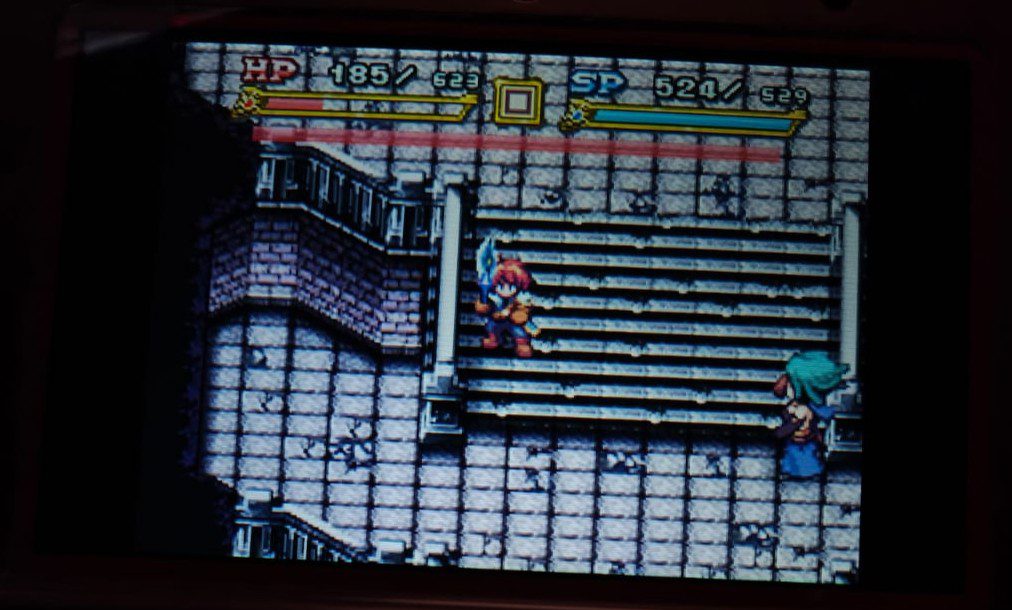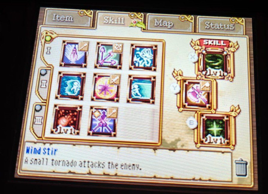 Os controles são simples e intuitivos: o direcional (D-Pad) move o personagem, o botão A ataca e os botões B, X e Y são usados para habilidades especiais. O stylus na tela inferior serve para acessar menus — como o inventário, o mapa e a distribuição de pontos de status. A navegação é bem organizada e prática, mas há um detalhe que pode incomodar alguns jogadores: não existe botão de pausa. Se precisar usar itens ou trocar de arma no meio de uma luta, o jogo continua rodando — o que pode atrapalhar um pouco (a menos que você jogue Dark Souls, hahaha).