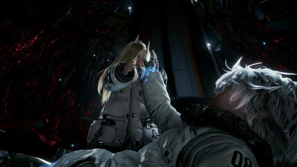 Também conhecemos a 8, outra pragmata como Diana, presa por conta da IDUS. Ela nos ensina como derrotar a IA, mas após conseguirmos, vem o plot twist: ela era, na verdade, a grande responsável por tudo e agora quer levar a destruição até a Terra.