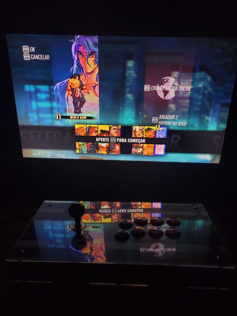 Usando o meu controle arcade para jogar, senti que o jogo tem um combate bem intuitivo e preciso, em nenhum momento senti que houve delay ou que morri por um erro no jogo. Eu testei um pouco todos os personagens, mas acabei gostando do Shiva – que por sinal ele é bem apelão – mas peguei mais pelo design que achei irado.